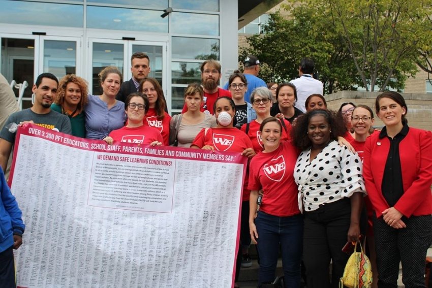 By zeroing in on toxic schools, the WE caucus picked an issue to fight, lead and win on. In late 2019, the Philadelphia Inquirer reported that a veteran teacher had been diagnosed with mesothelioma, the cancer caused by asbestos, which is also linked to lung, laryngeal and ovarian cancers, along with other diseases. And as the wealthy skirt paying property taxes, the breadth of the anger around toxic schools grows: It’s been a problem for decades, almost nothing has changed, and no one seems to be on the hook for it. Cleaning up school buildings is a non-ideological issue that can unite teachers across gender, race, and political lines. After all, everyone deserves safe working conditions. And there’s a solution: Tax the rich and end the tax abatement to pay for the building renovations Philadelphia schools so desperately need. WE has been very clear about both the problem and the solution, and it’s organized from the bottom up to turn this crisis for students and teachers into a crisis for the School Board, the city, the state and—frankly—PFT leaders, who are scrambling to keep up with WE’s work.