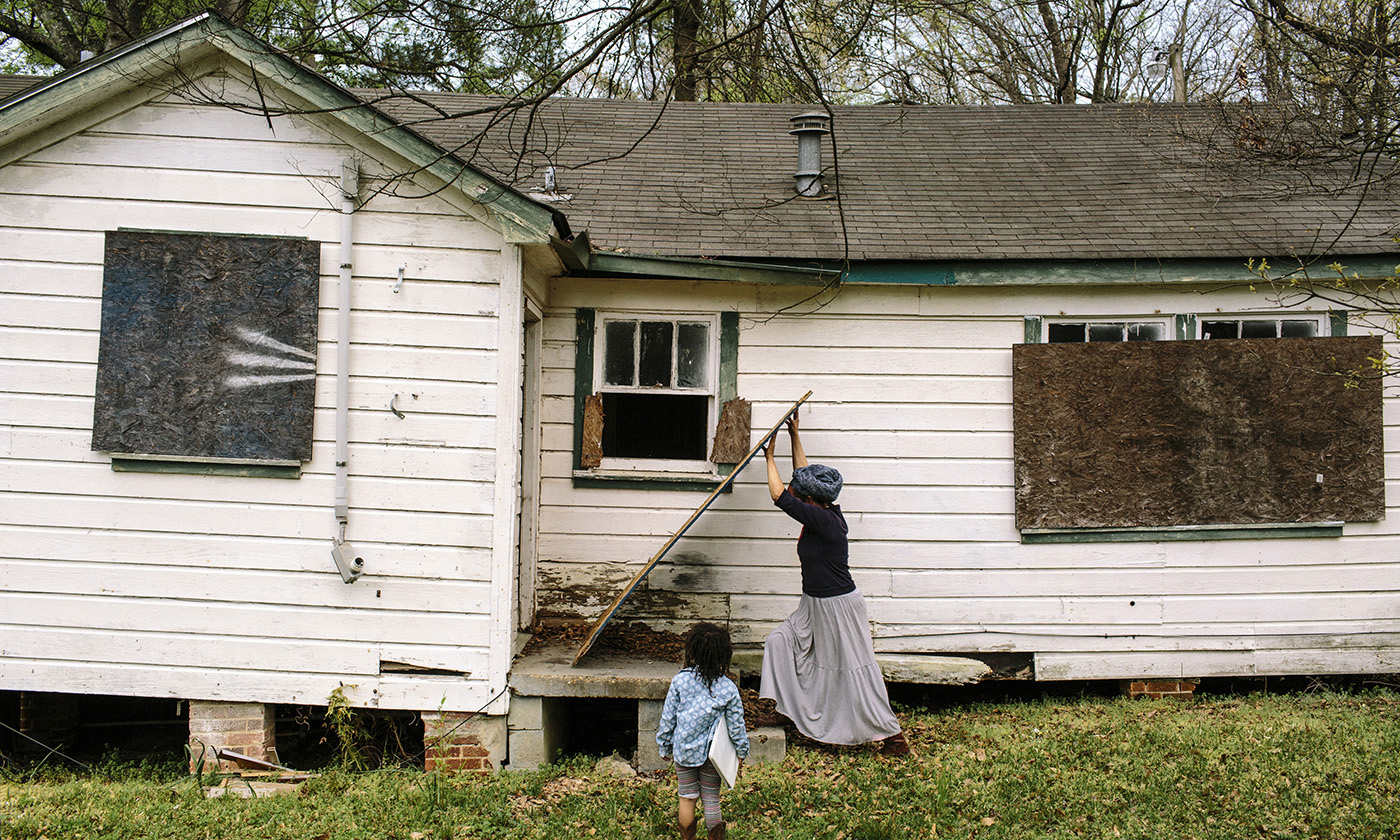 Founded by residents in 2013, CCNWJ quietly acquired 65 properties from absentee owners and slumlords within a sprawling, largely neglected eight-block area of West Jackson containing vacant lots, commercial and residential property, and long-term lease property. Rather than rehabbing through contractors, the association uses “neighbor labor” for “all renovations,” Umoja says. It also operates a community supported agriculture site and manages the Airbnb-listed Mulberry Tree Guesthouse.