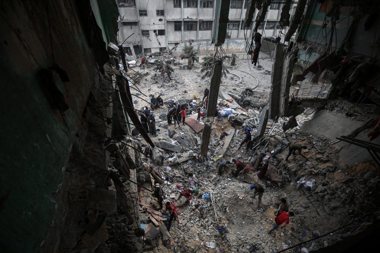 Above photo: Palestinians inspect the destruction of the al-Falah school in Gaza City’s Zaytoun neighborhood, June 30, 2025. Omar Ashtawy/APA Images.