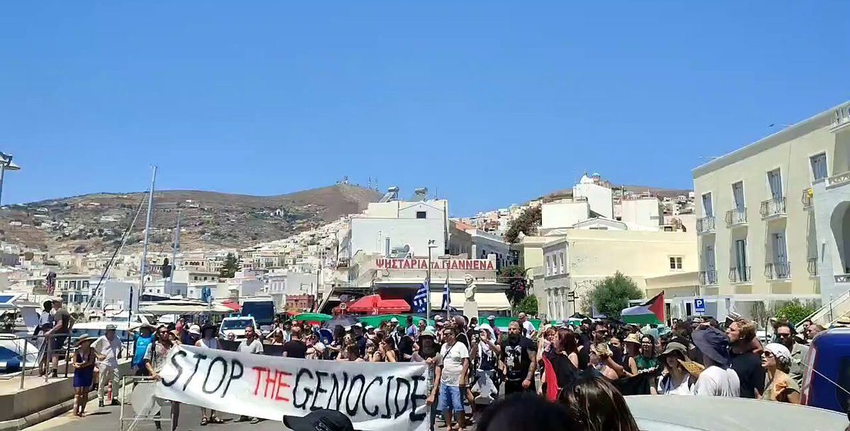 Israeli passengers on a cruise ship arriving in Greece on 22 July were unable to disembark the vessel due to a large crowd of pro-Palestine protesters demonstrating against the Israeli genocide of Palestinians in the Gaza Strip.