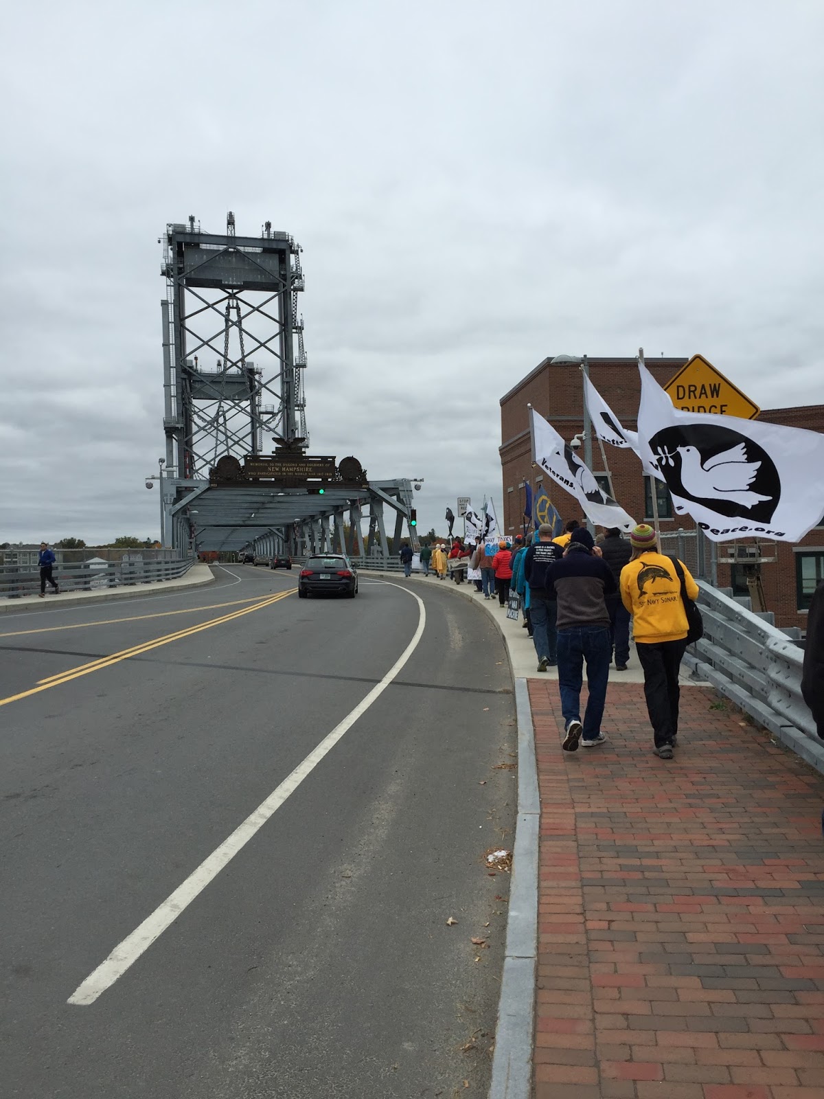 The band followed the walk all the way to the front gate of the Portsmouth Naval Shipyard in Kittery, Maine where we stood across the street during the shift change. Hundreds of workers saw our message: