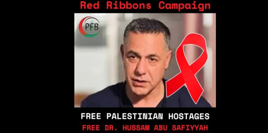 The Palestinian Forum in Britain (PFB) has announced the launch of a new solidarity campaign calling for the release of Dr Hossam Abu Safiya and all Palestinian prisoners held in Israeli occupation prisons. The campaign will take the form of a calm, symbolic action titled the “Red Ribbons Campaign”, to be held on Saturday 20 December at Oxford Circus in central London, at 1:00 pm.