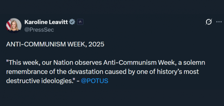 On November 7, 2025, Donald J. Trump declared Anti-Communism Week 2025 as “a solemn remembrance of the devastation caused by one of history’s most destructive ideologies.” He proclaimed that communism was a story of “blood and sorrow” and amounted to nothing more than servitude. The following statement is particularly noteworthy: “New voices now repeat old lies, cloaking them in the language of ‘social justice’ and ‘democratic socialism,’ yet their message remains the same: give up your freedom, place your trust in the power of the government, and trade the promise of prosperity for the empty comfort of control.”