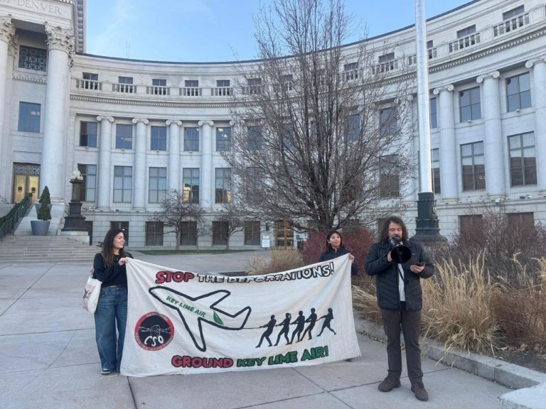Over the last week, the campaign to stop Key Lime Air from operating deportation flights has expanded. Organizers from Aurora Unidos CSO, Immigrant Partnership Teams, Freedom Road Socialist Organization, Colorado Immigrant Rights Coalition, and Casa de Paz gathered outside of the Denver City Council meeting on December 15. The city councilors were scheduled to vote on Key Lime Air’s presence at Denver International Airport. If passed, the bill would expand Key Lime Air’s contract with the airport by increasing its operating space there.
