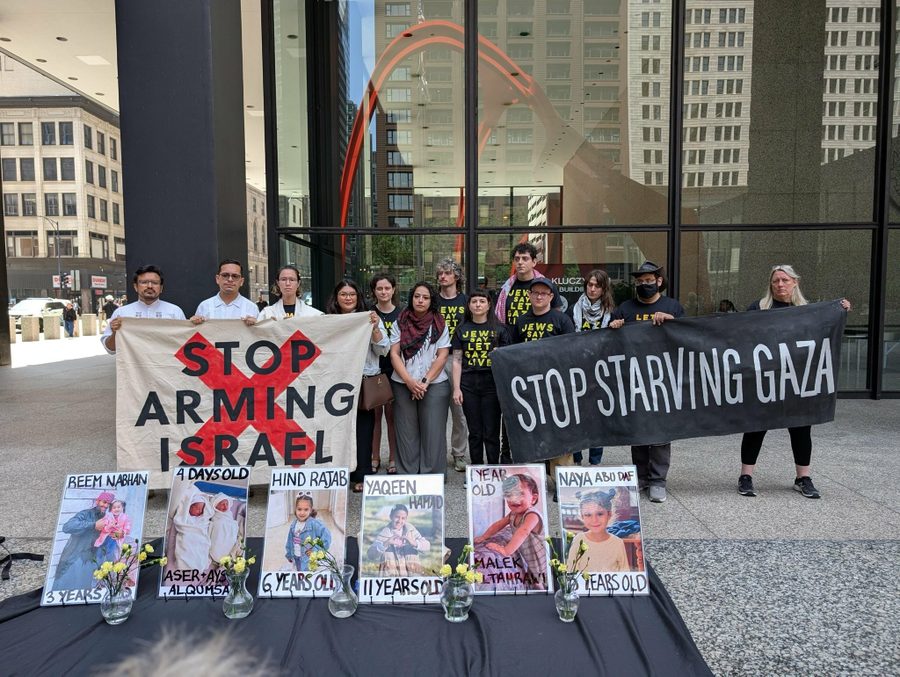 Above photo: On Monday, JVP Chicago held a press conference and rally as six members of the group began an indefinite hunger strike calling on the U.S. government to stop arming the Israeli military and stop starving Gaza. JVP.