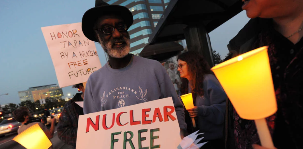 Above Photo: Anti-nuclear demonstrators hold a candlelight vigil to protest against nuclear power outside the Federal Building in Los Angeles, California, on March 28, 2011. MARK RALSTON / AFP VIA GETTY IMAGES