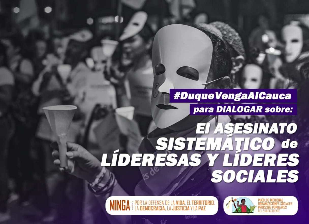 There is a crisis happening right now in Cauca, Colombia. The Colombian Armed Forces have attacked a “minga” in the village of Cairo, municipality of Cajibío – twice in two days – and are still present and threatening more assaults. The minga is a collective consultation called by indigenous, Afro-Colombian, and farming communities and organizations, including FENSUAGRO, the agricultural workers union and with whom the Alliance for Global Justice works. Participants are demanding to meet with Colombia’s President Ivan Duque, who has so far not responded. The minga has been called to advocate for land rights and an end to political violence and displacement. The minga is happening throughout Cauca, with tense encounters also occurring in other townships.