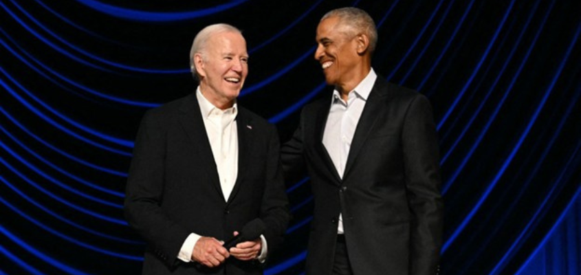Above photo: President Biden and President Obama during a campaign fundraiser at the Peacock Theater in Los Angeles in 2024. Mandel Ngan/AFP via Getty Images.