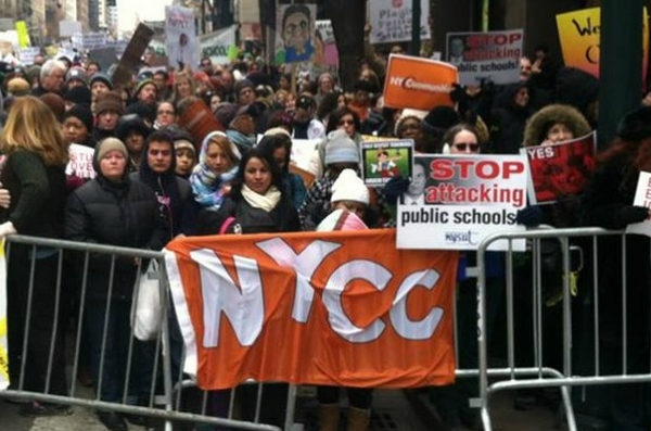 “Wall Street got a bailout. Public schools were sold out,” was the message as protesters rallied, surrounded by NYPD barricades, outside Cuomo’s 3rd Avenue office building. The group is calling on the state government to fully fund public schools, limit high-stakes testing, support struggling schools, fairly evaluate teachers, and stop the expansion of charter schools.