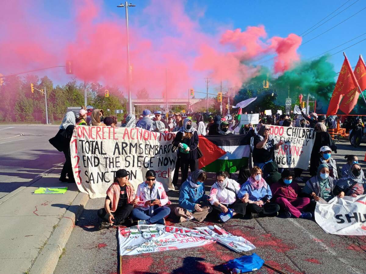 The group, which included the Palestinian Youth Movement, Labour for Palestine and Independent Jewish Voices, is calling for an immediate two-way arms embargo on Israel, an end to the planned construction of a new weapons facility in Ottawa and redirection of military spending to health care, housing, education and climate justice.