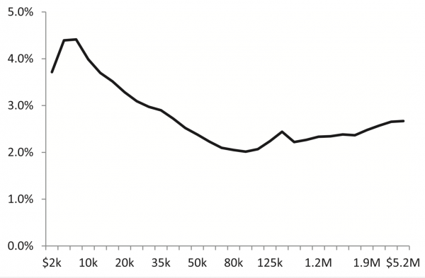 Source: U.S. Department of the Treasury, IRS microdata, 1 percent sample of all tax filers (N = 24 million) and 100 percent sample of people making $1 million or more (N = 45 million).