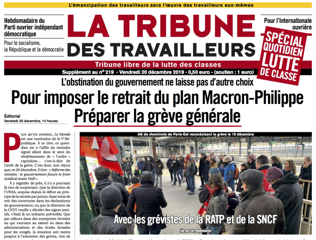 More than a daily newspaper, Le Monde is an institution of the Fifth Republic. In this capacity, the paper is always on the look-out for the slightest signal that indicates the re-establishing of capitalism’s “order”…in other words, an end to the strike action. So it was delighted to feature this headline today, 20 December: “Pensions reform: the government causes a crack in the trade union front before Christmas”.
