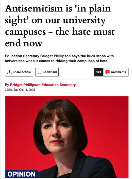 In a commentary in the Sunday Express, Phillipson said she wanted the government’s campaign against free speech to go even further to protect Israel. She intends to import to our shores Donald Trump’s full-frontal assault on academic freedom.