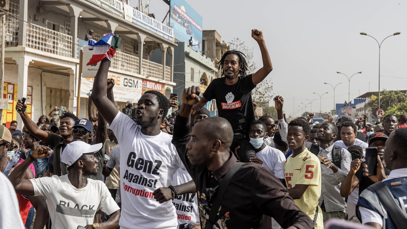 Above photo: Protesters in Banjul call for the release of youth activists detained on May 8. Malick Njie / @malick_njie_likka.