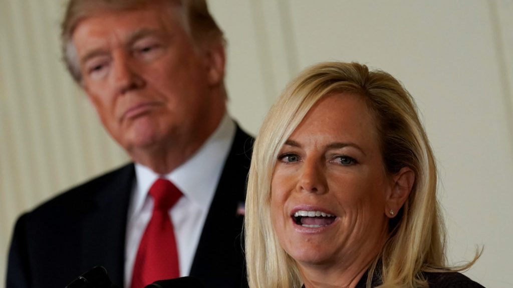 Above: Homeland Security Secretary Kirstjen Nielsen with President Donald Trump