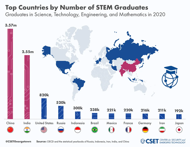 And the Chinese have, the Chinese civilization-state, every year, now produces more engineers and scientists than the Western countries combined.