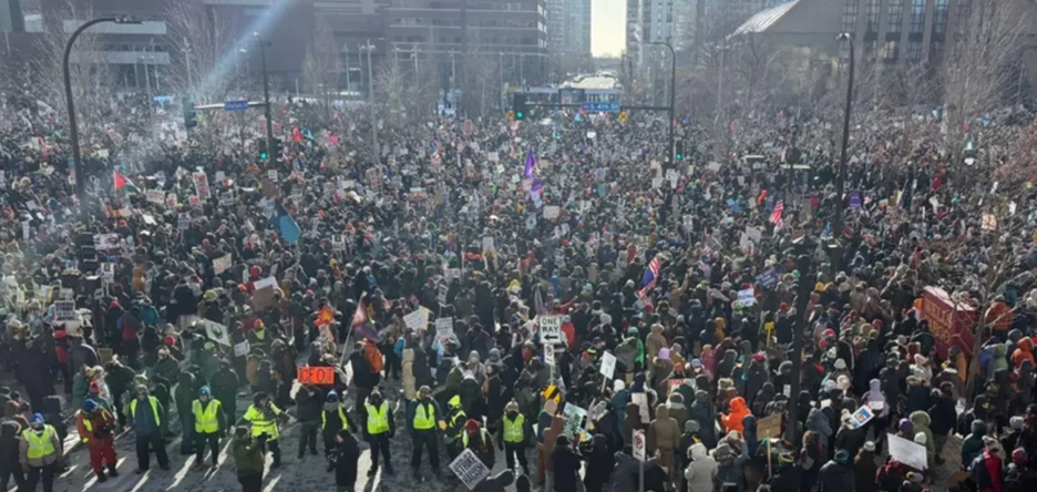 In contrast, Minnesota’s Day of Truth and Freedom one week earlier on January 23 did give a glimpse of the power of everyday people to make the system tremble. Many (though not most) businesses were shuttered. And over 75,000 people poured into downtown Minneapolis in the middle of the workday, braving -20°F chills. As SEIU Local 26 president Greg Nammacher put it on the Dig’s excellent new episode on Minneapolis,
