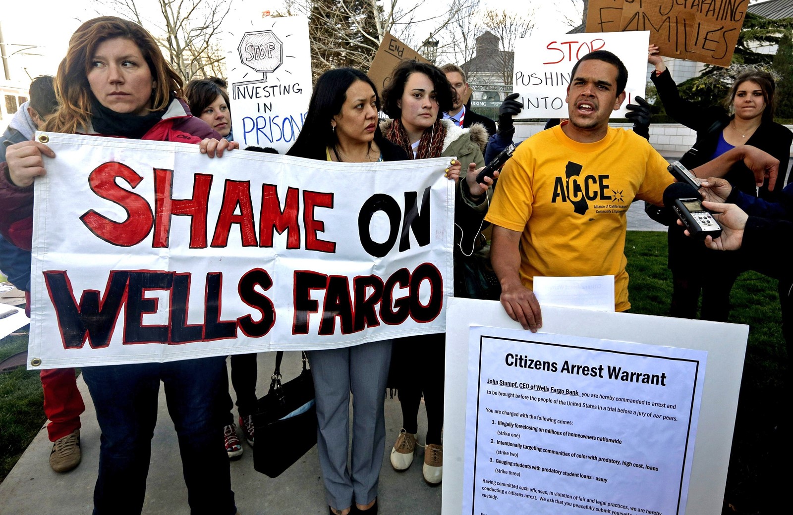 Above photo: A protest outside the Wells Fargo shareholders meeting in Salt Lake City in 2013. Rick Bowmer /Associated Press.