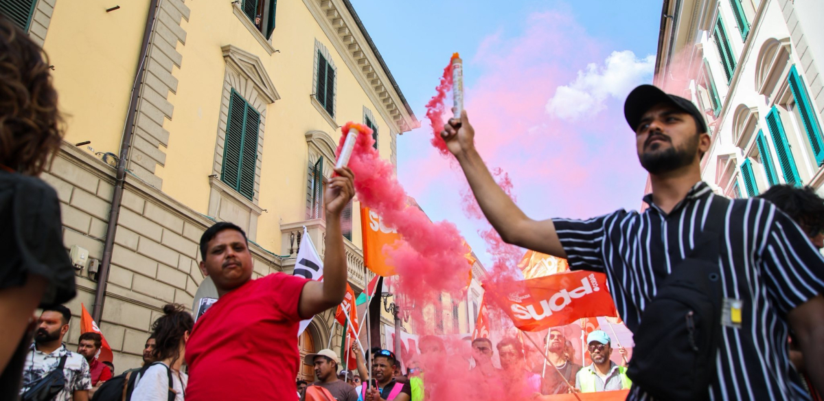 Above photo: The Italian city of Prato is a hub of world-famous “Made in Italy” fashion. The city hosts over 7,000 textile and garment companies, employing 43,000 workers—and has become notorious for its exploitative labor conditions. SUDD Cobas.