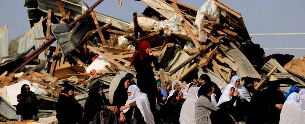 Above photo: Bedouin women sit outside a demolished home by Israeli forces in the southern village of Umm al-Hiran, Jan. 18, 2017. (AP/Tsafrir Abayov)