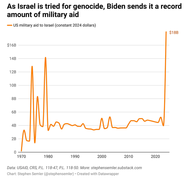 From October 2023 until Biden left office in January 2025, his administration sent more than $18 billion of so-called military aid to Israel.