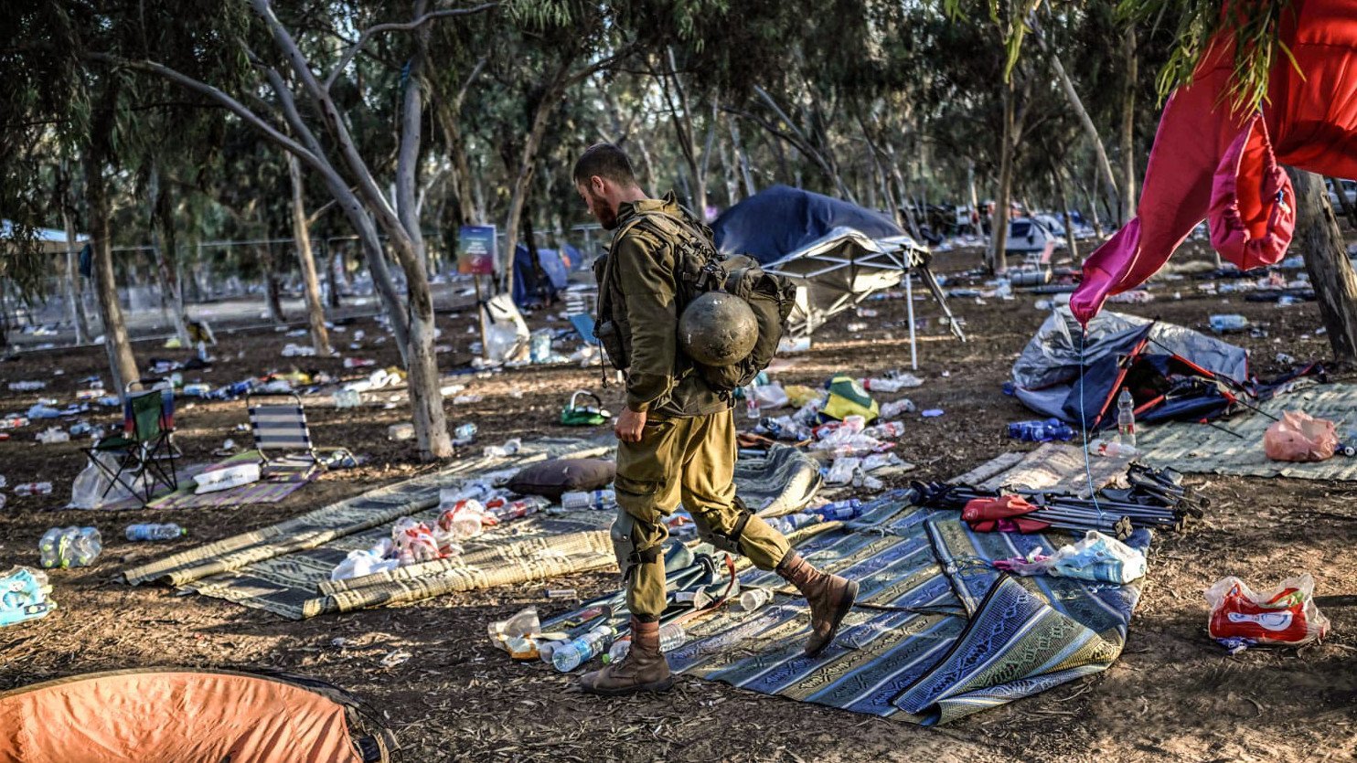 Above photo: An Israeli soldier patrols near Kibbutz Beeri on Octobar 7. AFP.