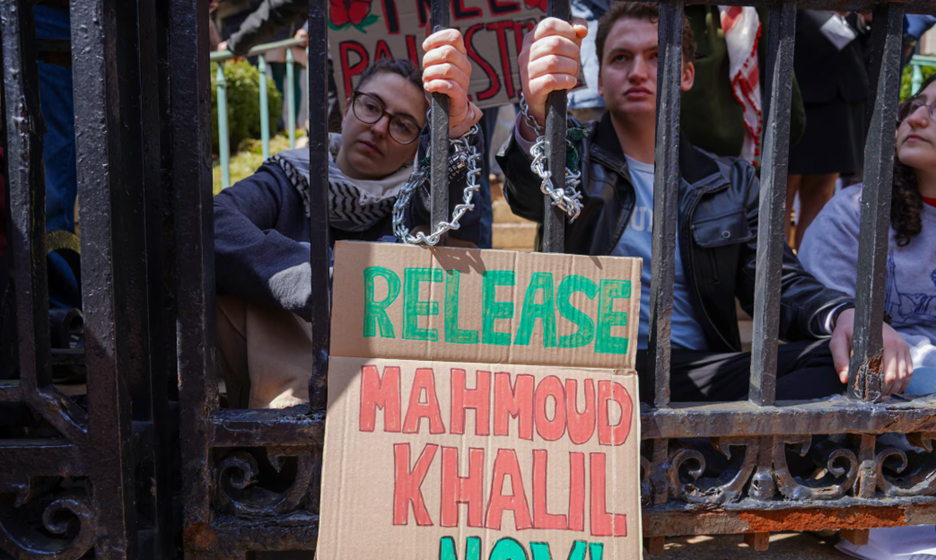 Demonstrators are protesting in support of Mahmoud Khalil.