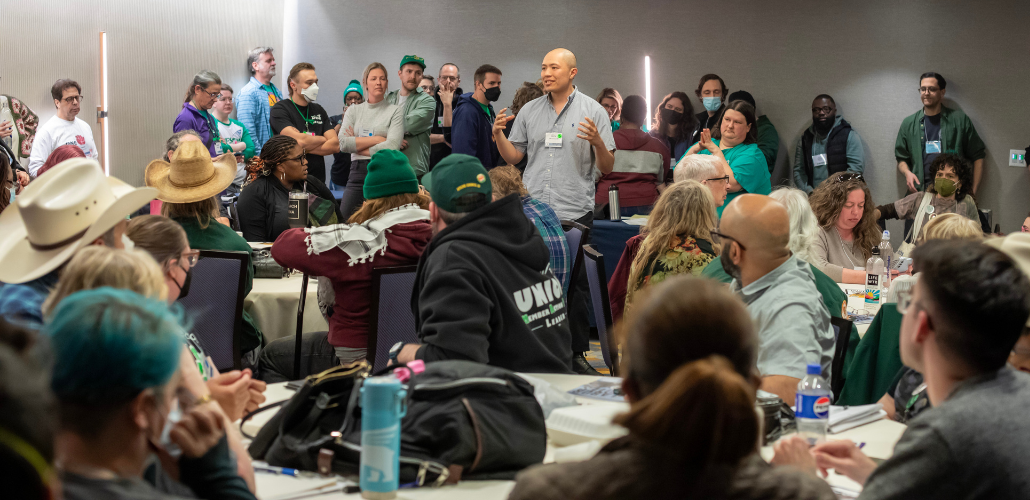 When union officers are the only ones leading meetings, members can lose sight of the fact that the union belongs to them. Distributing leadership at meetings not only reinforces our sense that “we are the union,” but also helps build members’ leadership skills. Encourage members to step up, give them opportunities to lead, and support their growth as leaders.
