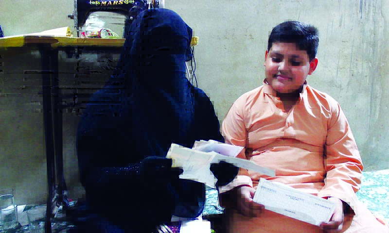 Above: Guantanamo widow, Ahmed Rabbani’s wife, 25-year-old Fawzia and their 11-year-old son, Jawad, look at his letters. — Photo by author, Zofeen T. Ebrahim.