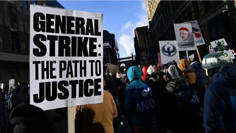 On Jan. 23 in Minnesota, walkouts spread. Students left classrooms. Transit slowed. Freight stalled. Tens of thousands filled the streets in subzero temperatures. Large parts of Minneapolis and St. Paul shut down.