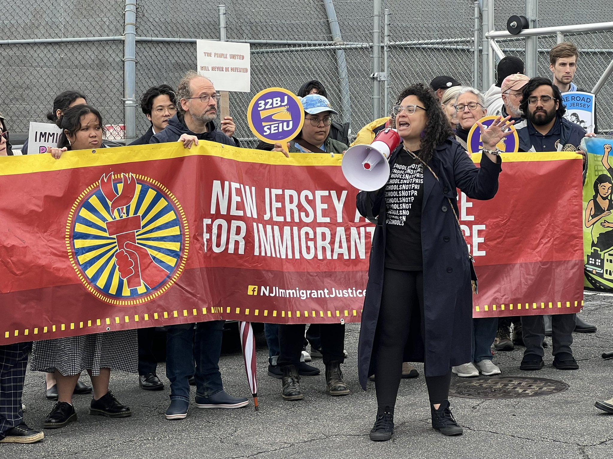 Above photo: Rosa Santana from First Friends speaks at a protest outside the Delaney Hall immigrant detention center in New Jersey in May. Twitter/New Jersey Alliance for Immigrant Justice.