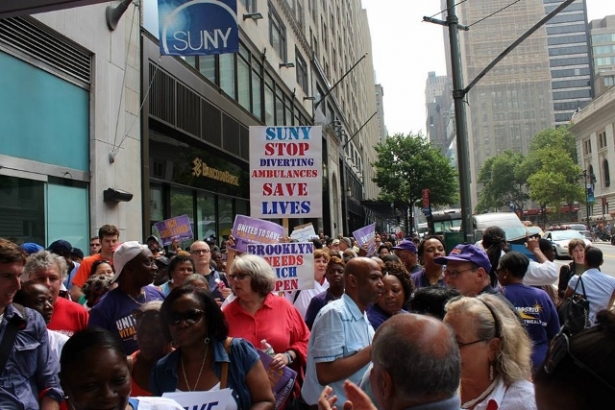 Above: Members of the New York State Nurses Association at a rally to save Long Island College Hospital in July. (Photo from NYSNA)