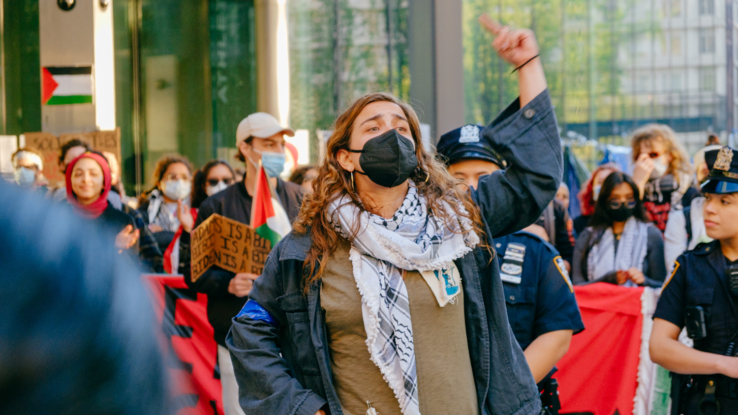 Above photo: Demonstrators stand in solidarity with NYU Gaza Solidarity Encampment in May of 2024. Wyatt Souers.