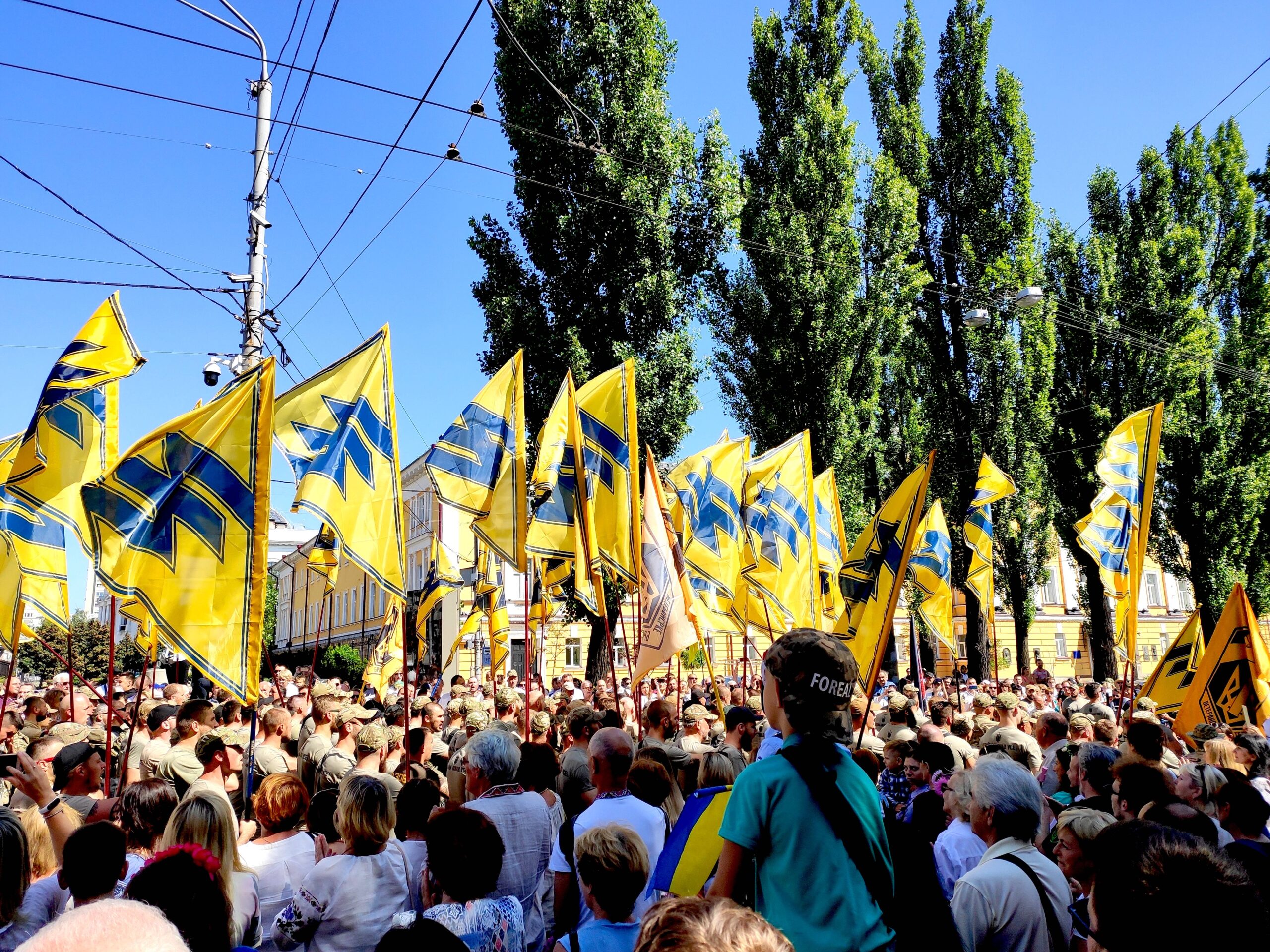 Above photo: A march of Azov veterans and supporters in Kiev, 2019. Goo3/Wikimedia Commons.