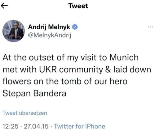 Zelensky has also not rebuked his ambassador to Germany, Andrij Melnyk, for visiting Bandera’s grave in Munich, which provoked this reaction from a German MP: “Anyone like Melnik who describes the Nazi collaborator Bandera as ‘our hero’ and makes a pilgrimage to his grave or defends the right-wing Azov Battalion as ‘brave’ is actually still benevolently described as a ‘Nazi sympathizer.’”