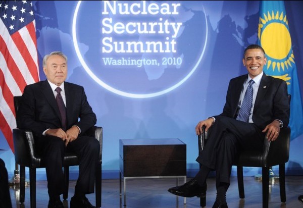 Above photo: 2010, Meeting with his Kazakh counterpart Nursultan Nazarbaev (left), U.S. President Barack Obama said the two share a vision of a world without nuclear weapons.