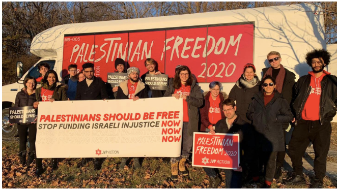 Last week, student activists with the group Jewish Voice for Peace (JVP) were in Iowa as part of their Palestinian Freedom 2020 Bus Tour. The 14 Jewish and Palestinian students arrived in the state to demand that Democratic candidates stop funding Israel’s occupation and embrace Palestinian rights. The trip was organized JVP Action, the political and advocacy wing of JVP.