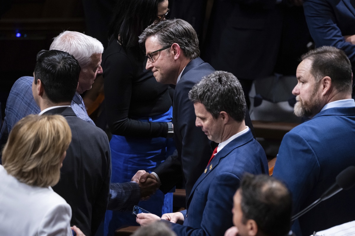 Above photo: House Speaker Mike Johnson (R-La.) shakes hands with Rep. Steve Womack (R-Ark.) in the House chamber during the final vote on a budget reconciliation bill for President Trump’s legislative agenda at the U.S. Capitol July 3, 2025. Francis Chung/POLITICO via AP Images.
