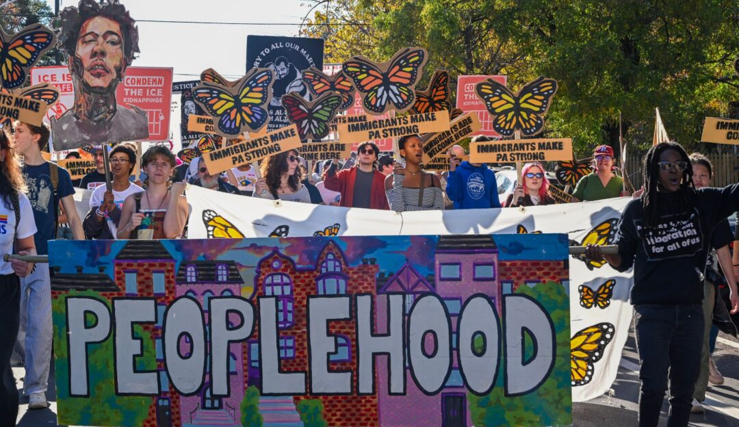The 25th annual Peoplehood was celebrated on Nov. 8 with its traditional parade from the historic Paul Robeson House at 50th and Walnut streets, through West Philadelphia neighborhoods, to end at Clark Park for a Pageant. It was met with continued applause from residents throughout. The two main issues celebrated were solidarity with immigrants and Palestine. But the crises for tenants, food instability and mass transit problems were also highlighted.