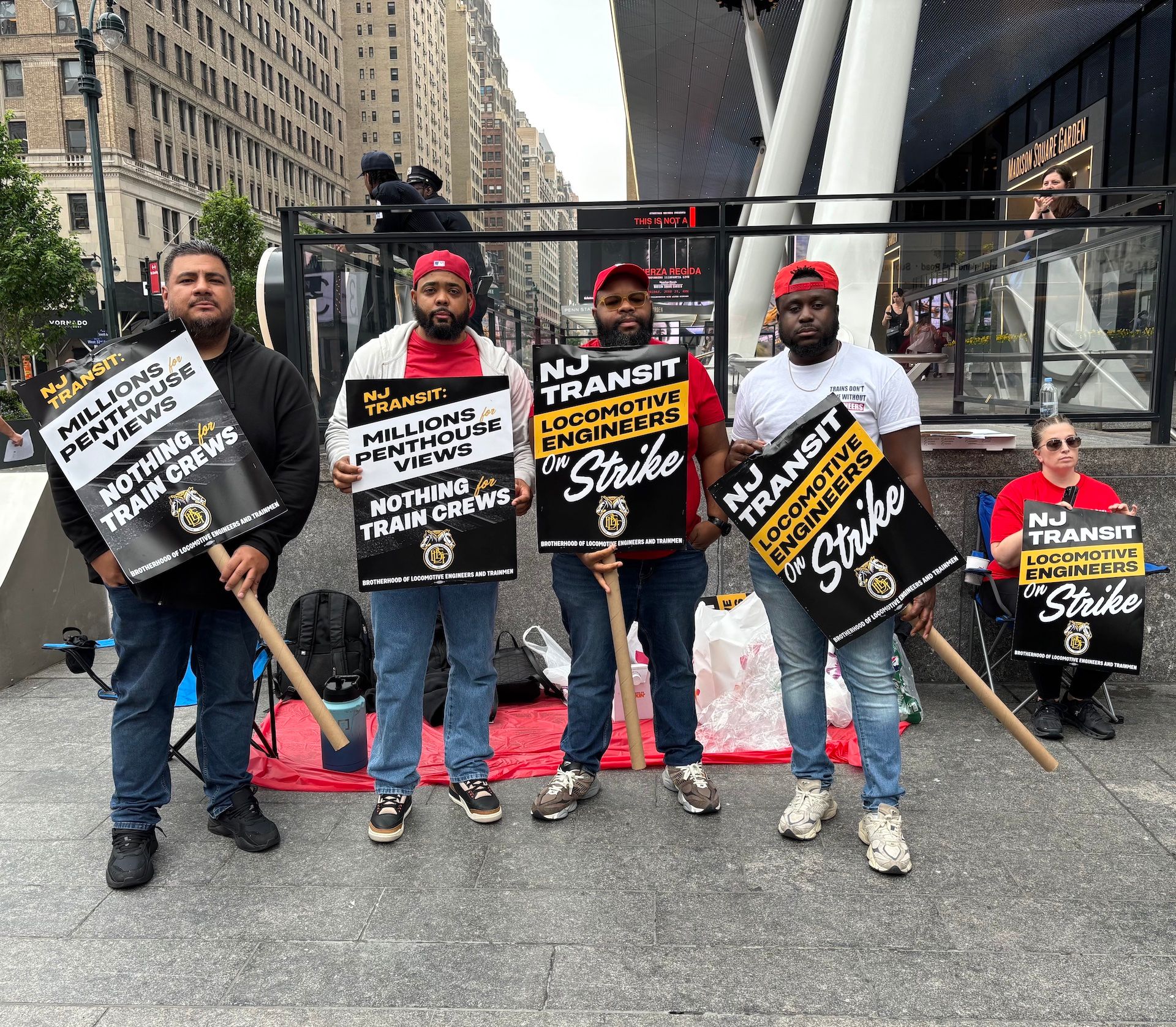 “Millions for Penthouse Views, Nothing for Train Crews” read one of the signs carried by workers in red union shirts outside Penn Station, referring to the money NJT spent on its new half-billion-dollar headquarters. Meanwhile, engineers had gone six years with no raises after working through the COVID-19 lockdowns in 2020-21 during which they lost colleagues.