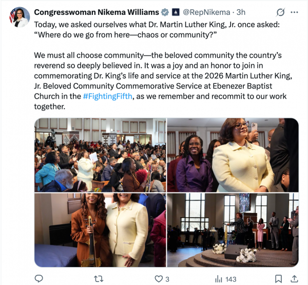 It’s abundantly clear that each of these statements have less to do with the life and work of Dr. King than Barry Goldwater did with passage of the 1964 Civil Rights Act. Yet, Representative Nikema Williams, who less than a week after voting for a bill that represents the direct antithesis of civil, freedom, and human rights, had the audacity to tweet about the question of “community or chaos” at the legendary Ebenezer Baptist Church, where Dr. King preached, is more an exercise of caucacity and moral bankruptcy than a demonstration of principled and unbought leadership. For whereas King proclaimed the need for increased programs to center and prioritize the poor, the Congressional Bootlicker Caucus instead center and prioritize white settler colonial zionism, militarism, and imperialism before the well-being of their own constituents and the broader citizens/residents of the U.S.