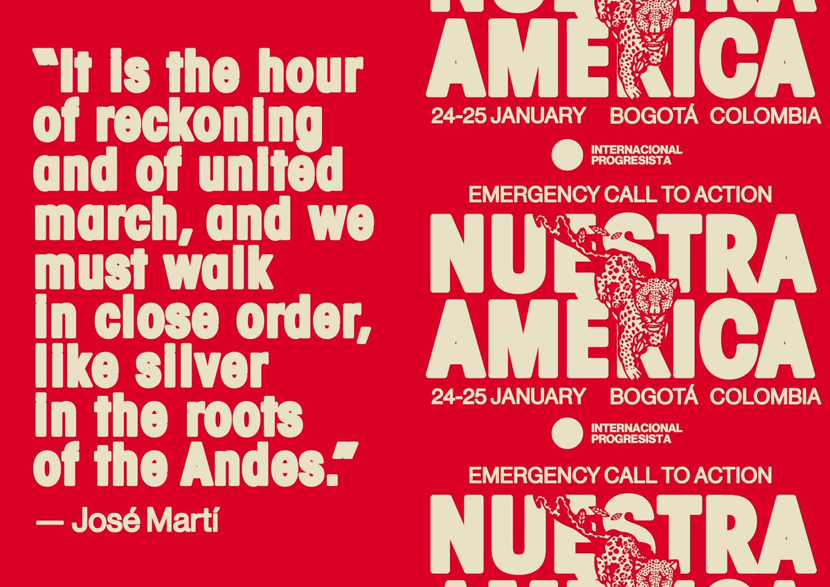 Above photo: Poster from the “Nuestra América” summit with a quote from Cuban independence hero José Martí. Progressive International.