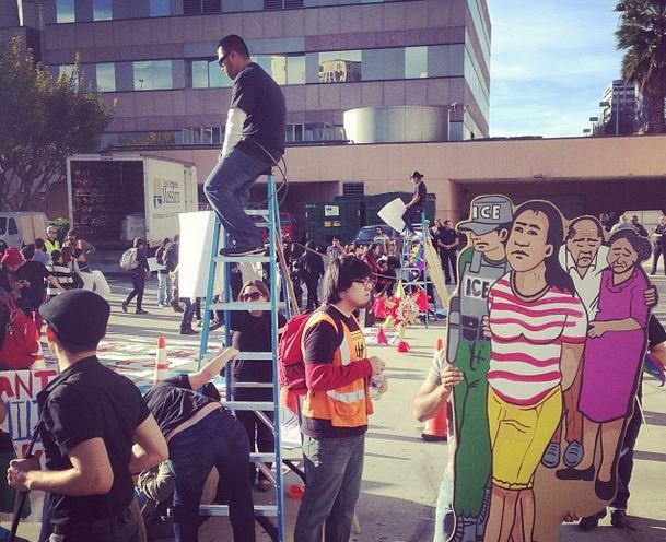 Bi-coastal demonstrations erupted Monday morning as over one hundred demonstrators in Washington, D.C. and Los Angeles shut down the regional offices of Immigration and Customs Enforcement (ICE) with a message for the “deporter-in-chief,” President Barack Obama: Not one more deportation.