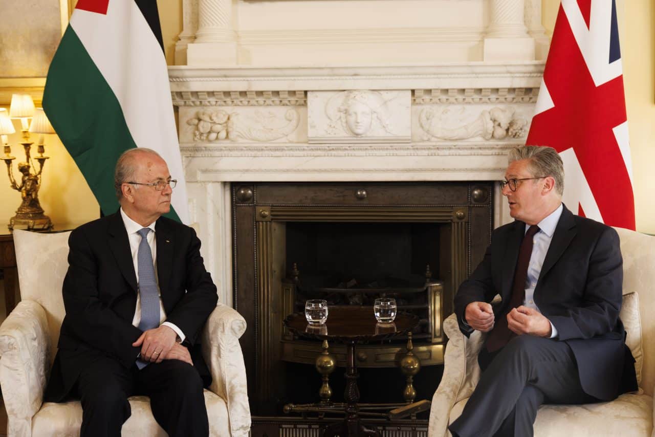 Above photo: British Prime Minister Keir Starmer meets with Palestinian Authority Prime Minister Mohammad Mustafa, for a bilateral meeting in 10 Downing Street, London, April 28, 2025. Simon Dawson/Flickr/No 10 Downing Street.