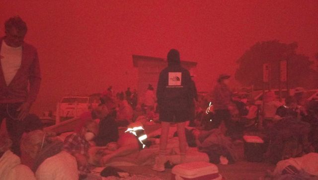 Residents sheltering from fire on Mallacoota wharf (Photo credit Twitter @bluesfestblues)