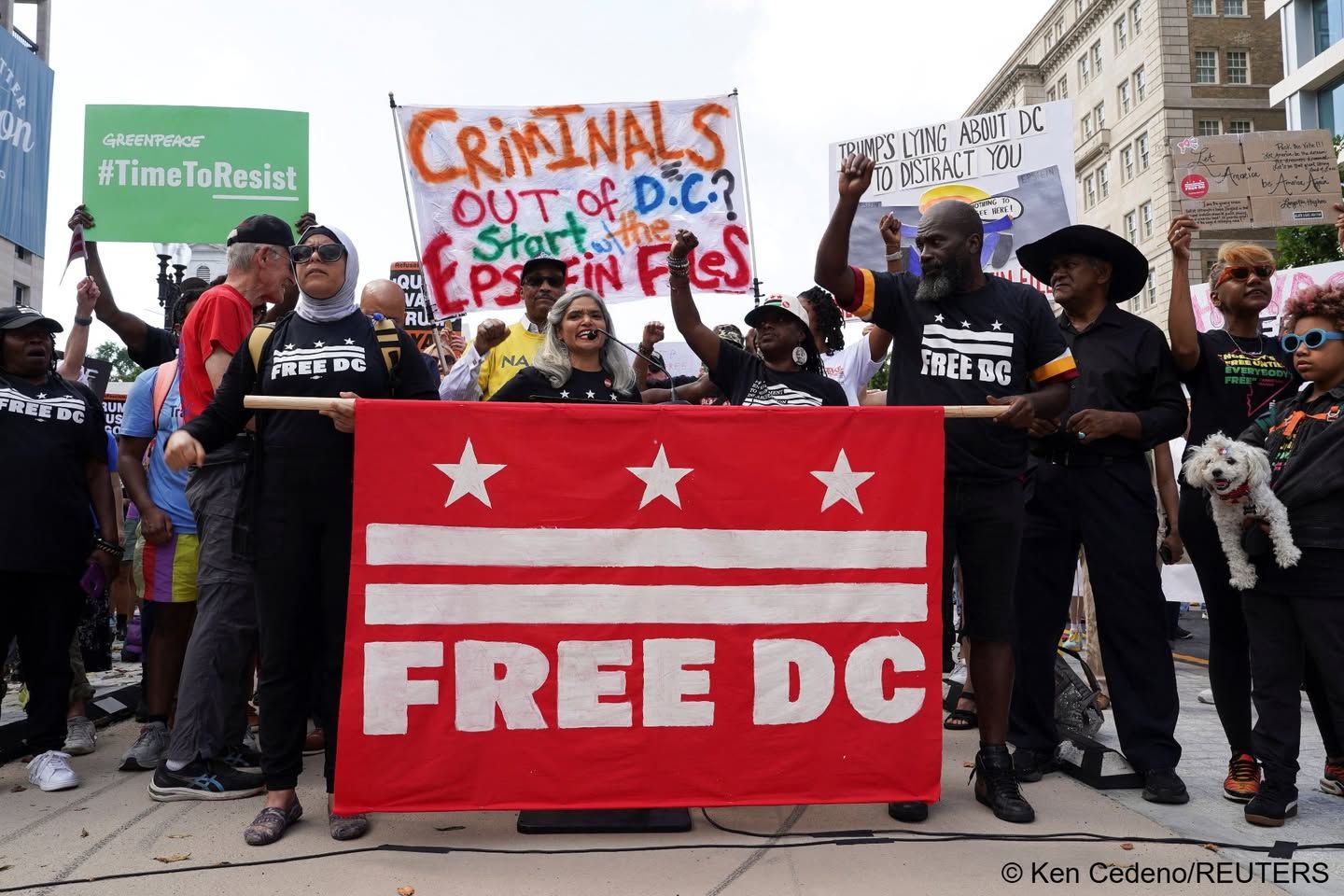 Above photo: Residents protest plans to deploy National Guard to Washington, D.C., Aug. 12, 2025.