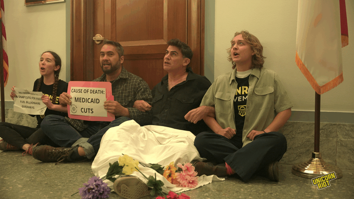 Washington, DC — Through a mass mobilization effort by the Sunrise Movement, activists gathered in the U.S. Capitol on June 3, 2025, to execute a series of Senate disruptions. Multiple groups stormed the halls of the Philip A. Hart Senate Office Building, with actions focusing on senators who support President Trump’s “One Big Beautiful Bill Act,” including Senator Thom Tillis. Multiple arrests were made.