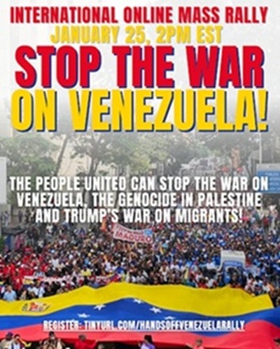Mass Online Rally on Sunday, January 25 at 2 pm Eastern/11 am Pacific – No War on Venezuela, Abolish ICE: