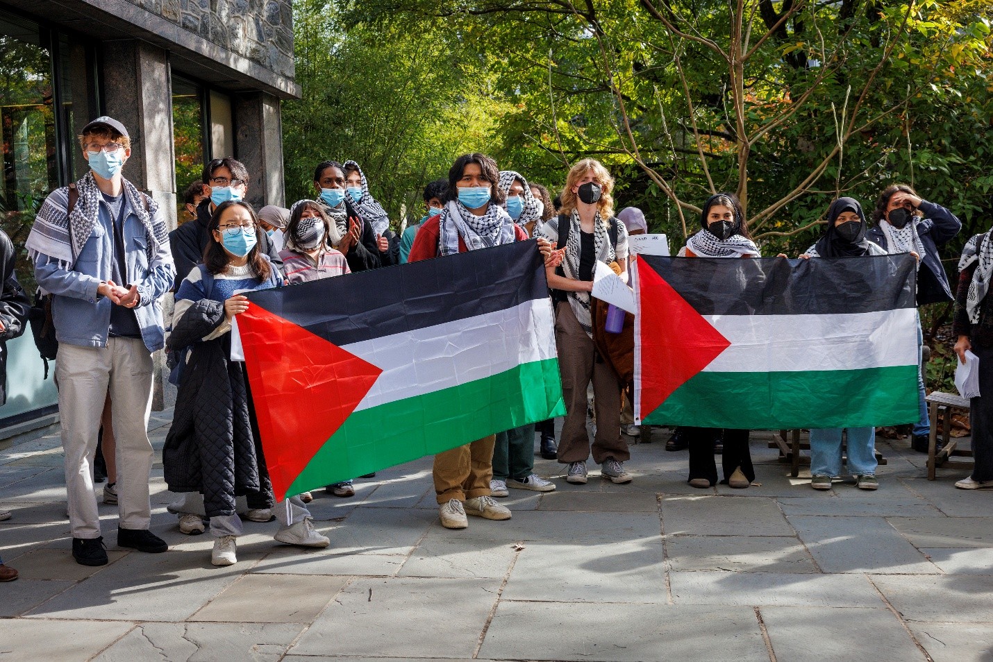 Above photo: Swarthmore students protest the college administration’s efforts to discipline those who engaged in pro-Palestinian protests on campus, November 2024.