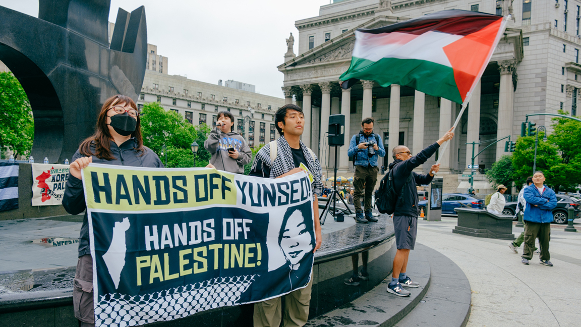 “The Trump administration’s persecution of Yunseo Chung and other pro-Palestine students is a blatant attack on immigrants, free speech, and Palestinian solidarity,” said Jamie Tyberg, a member of Nodutdol for Korean Community Development, one of the organizations leading the rally on Thursday. “The Trump administration must end its witch hunt against students, immigrants, and activists and commit to the demands broadly supported by the people of this country: an arms embargo against Israel and an end to the siege on Gaza.”